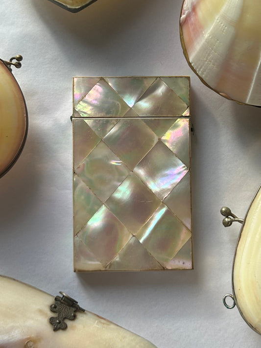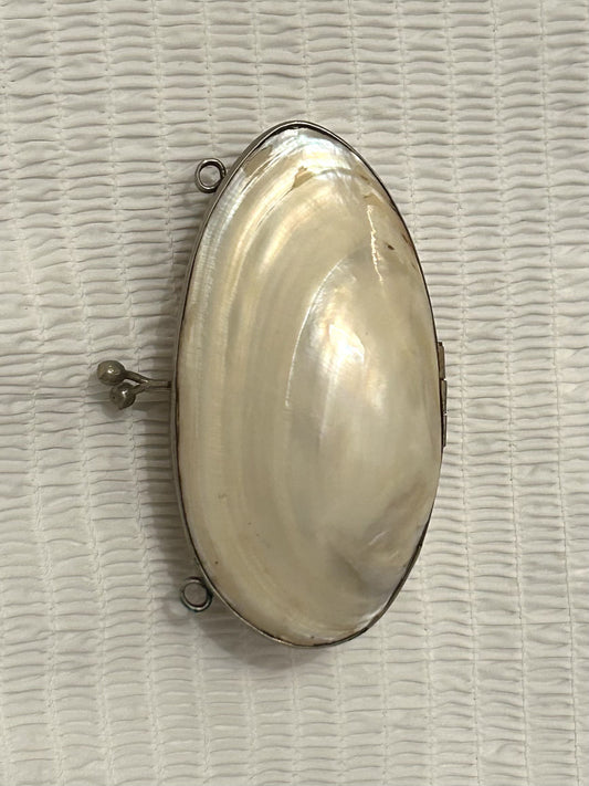 A Vintage French Silver Tone Mother of Pearl Shell Box