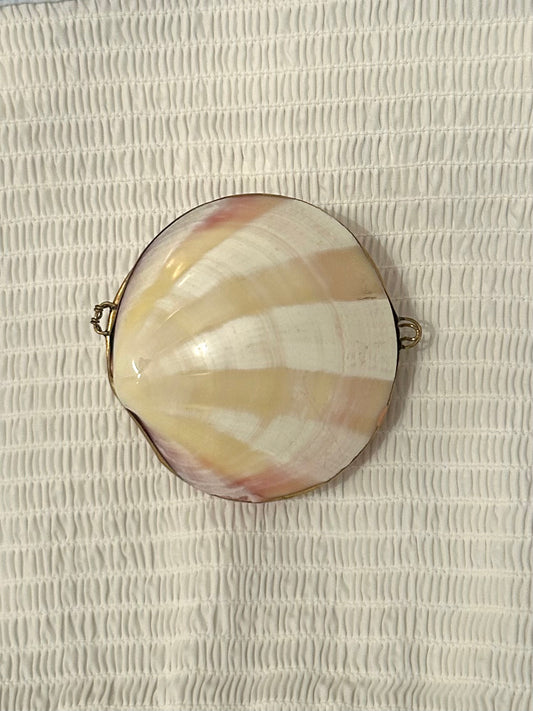 A Vintage Large Ribbed Cream Shell Coin Purse / Trinket Dish