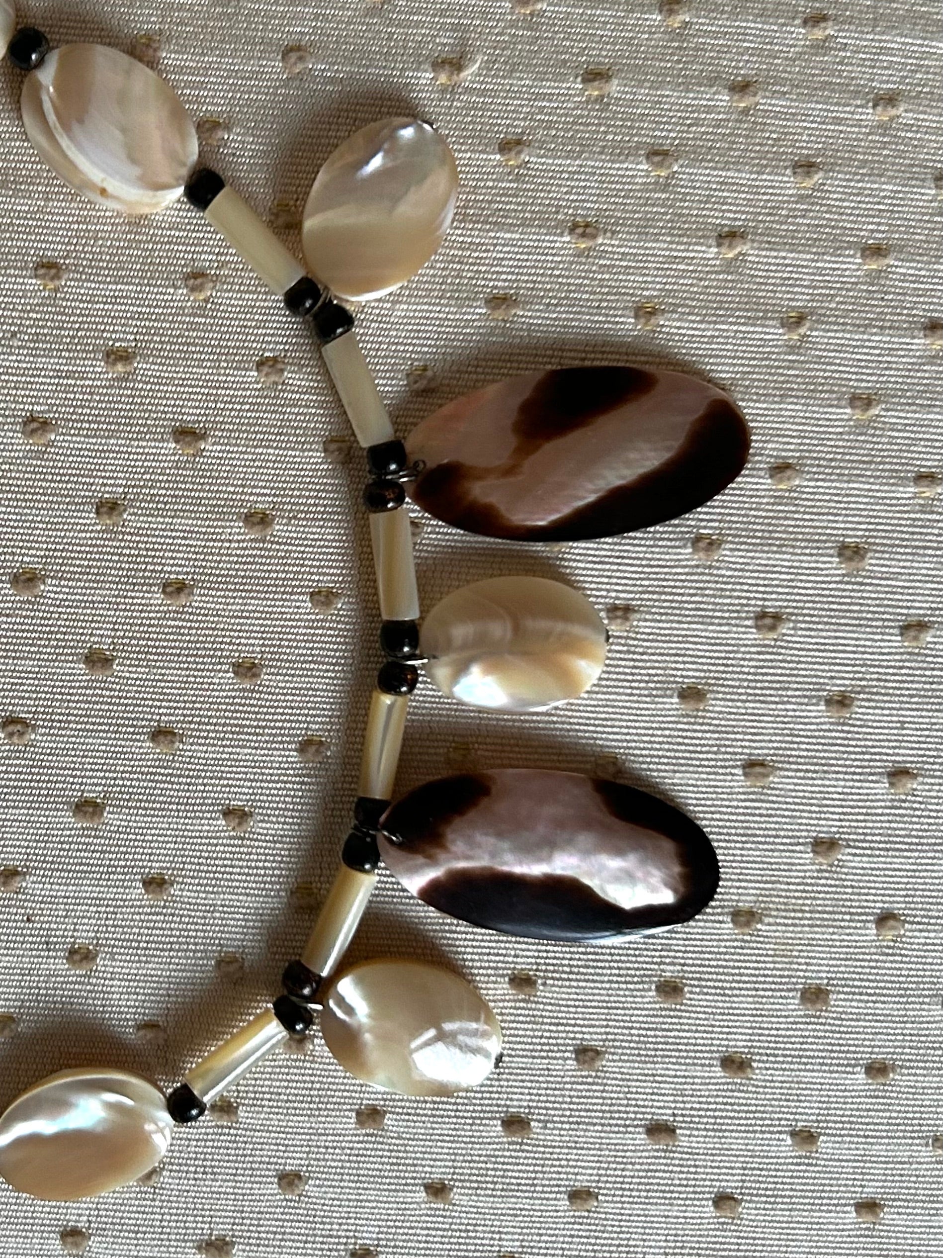 Vintage mother-of-pearl shell necklace with natural tortoiseshell pattern. Excellent condition.