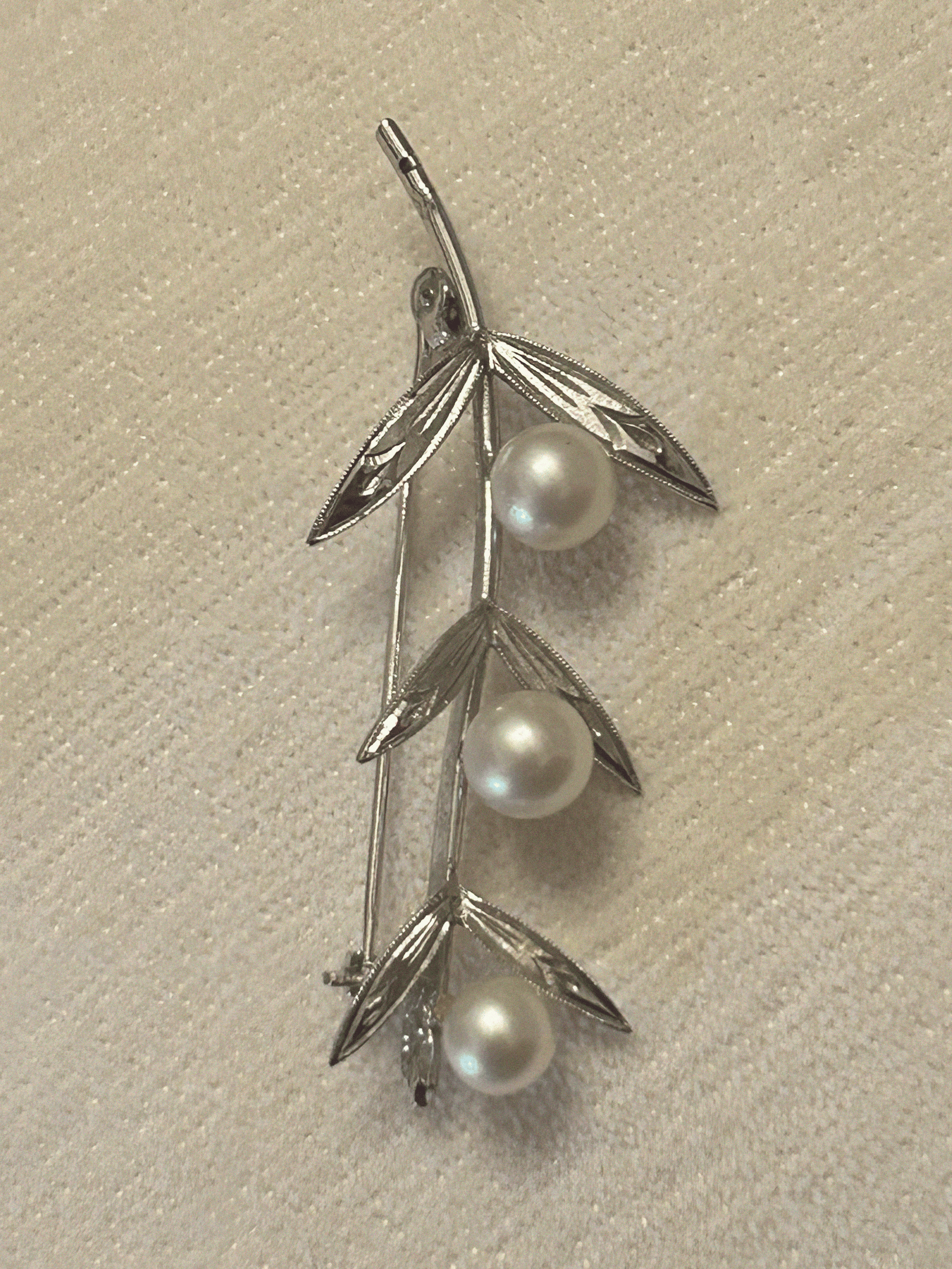 Estate Vintage 925 Sterling Silver Japan Baroque Pearl Foliage Brooch Pin. 20th century, circa 1940s–1960s.