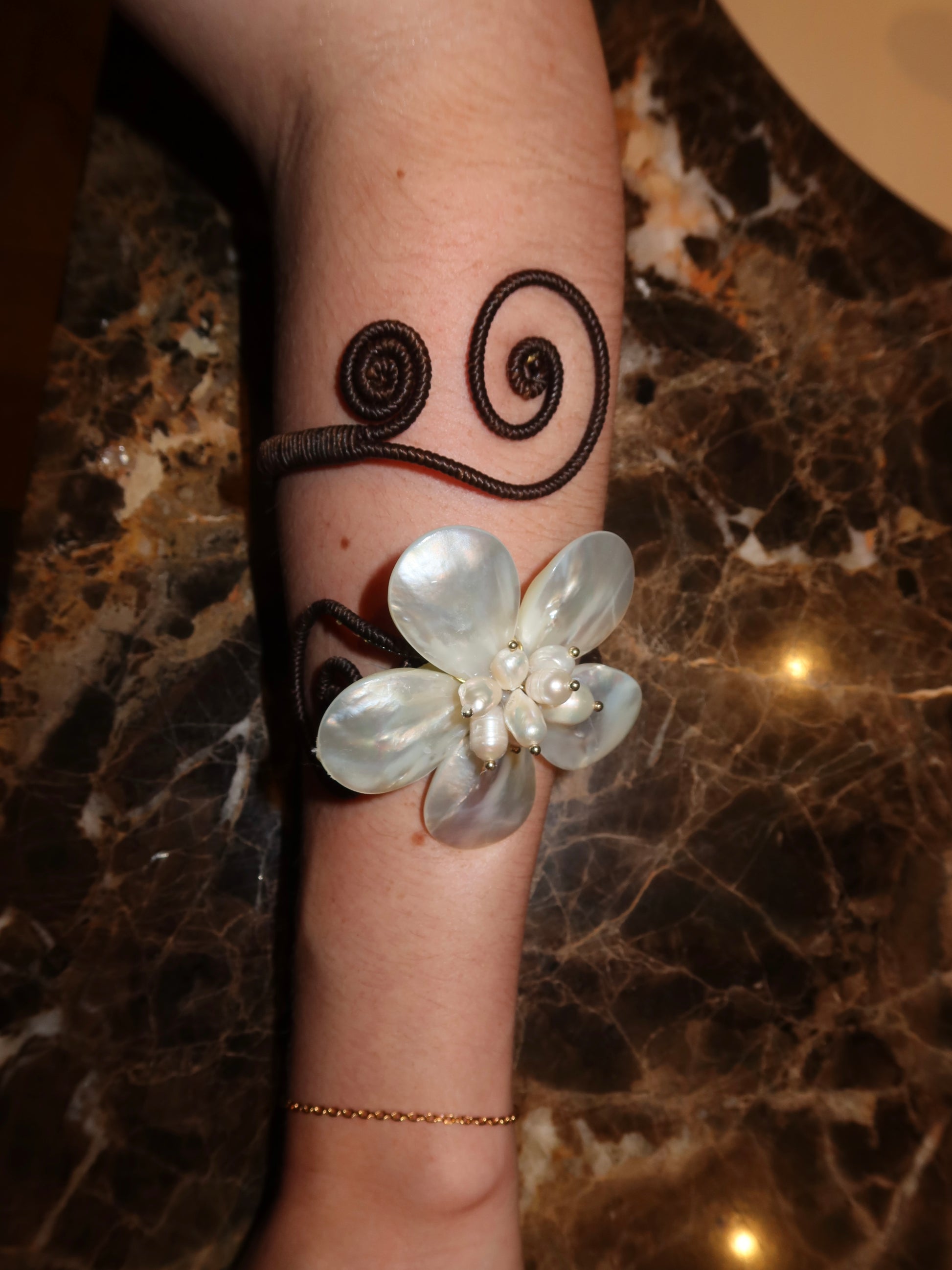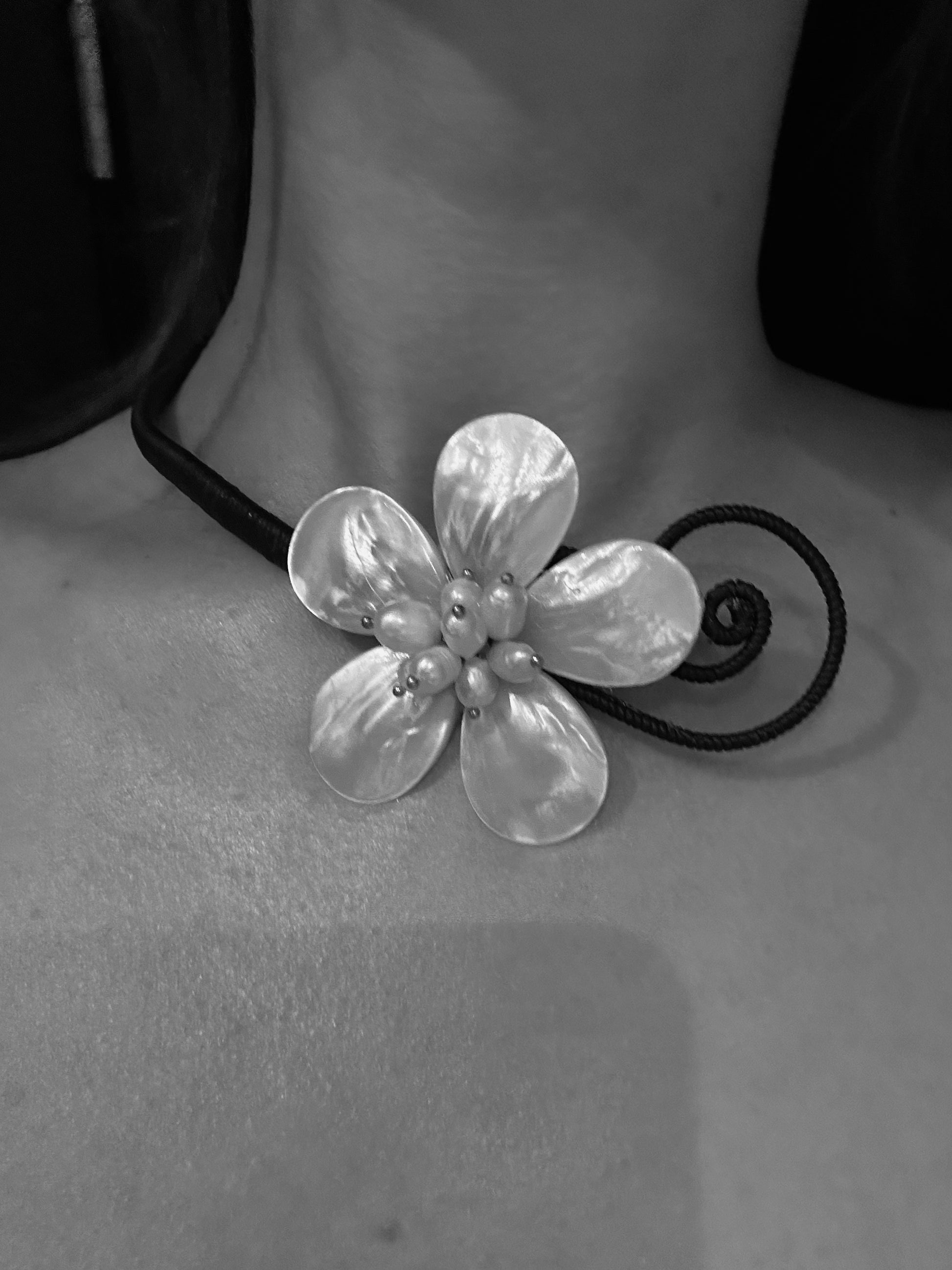 Exclusive piece. Ivory Mother of Pearl Seashell & Freshwater pearls. Curated in Costa Rica. Handcrafted piece. Wear as a necklace & bracelet. Adjustable. Foldable. Limited edition.