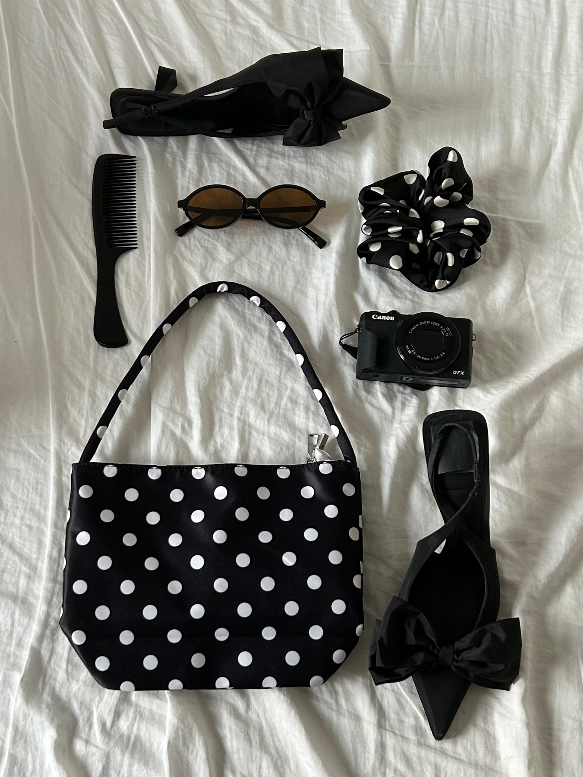 Fall for this white handbag with black polka dots and vintage chic style. Elegant and practical, it's the perfect accessory for your everyday outfits. Our bag can be closed with a zip. Add a touch of retro elegance to your outfit with this white polka dots handbag.